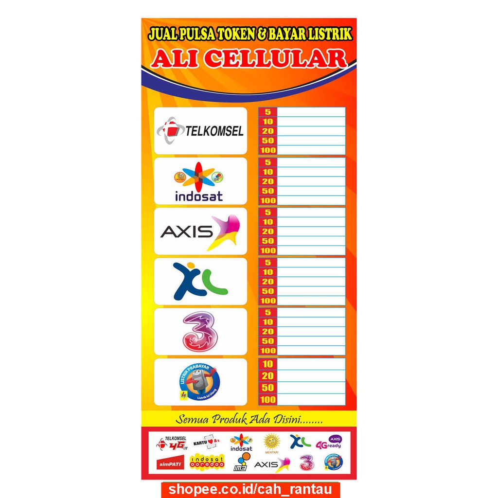 Banner Spanduk Konter Daftar Harga Pulsa Ukuran 60x100 cm ... from cf.shopee.co.id Maybe you would like to learn more about one of these? Daftar harga pulsa telkomsel di konter. We did not find results for: Check spelling or type a new query.